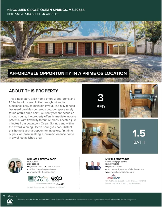 Whether you’re searching for an Ocean Springs investment property, a first home, or a low-maintenance residence close to downtown, 113 Colmar Circle offers location, versatility, and value in a competitive market.